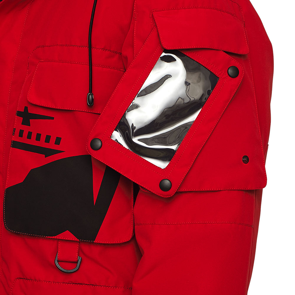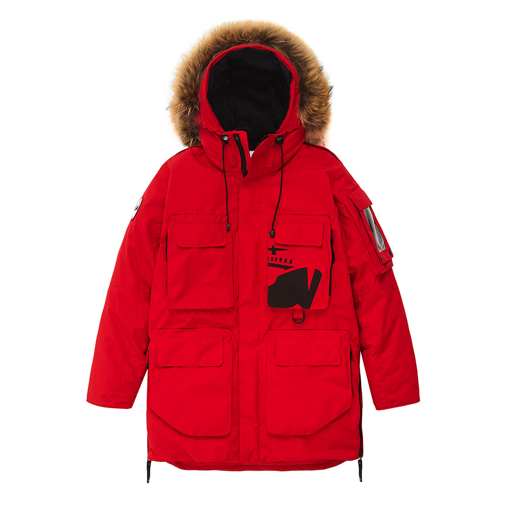 Капюшон регулируется в трёх направлениях и оснащён съёмной меховой опушкой, а боковые молнии обеспечивают свободу движения и удобство при вождении автомобиля. Светоотражающая панель на спинке повышает безопасность в тёмное время суток. Внешние утеплённые карманы и карман на рукаве с прозрачной секцией для ID-карты добавляют практичности в условиях городской зимы.