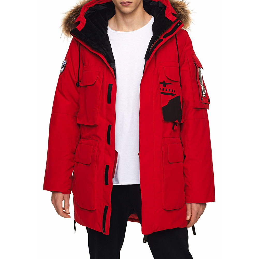 LEDOKOL — мужская зимняя парка с усиленной конструкцией и двойным пухпакетом. Создана на основе северных технологий и вдохновлена атомным ледоколом — символом мощности и надёжности российского арктического флота.