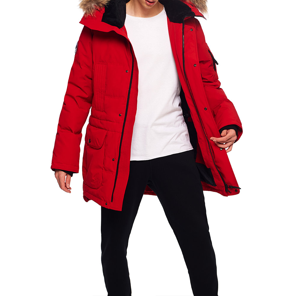 - предотвращение потери тепла через манжеты на рукавах и шнурки на талии: этот дизайн способствует лучшей посадке парки на фигуру и тем самым предотвращает проникновение холодного воздуха внутрь.