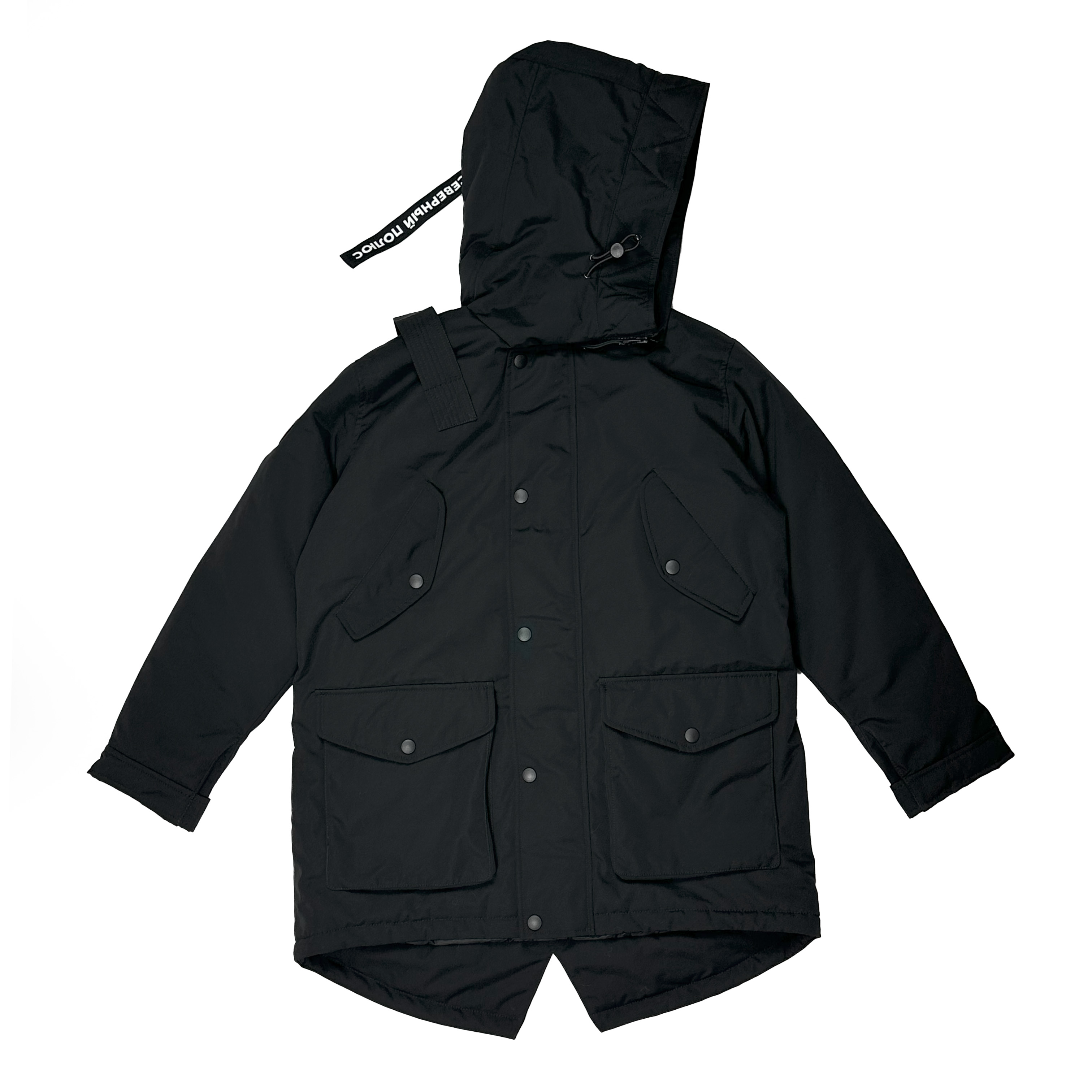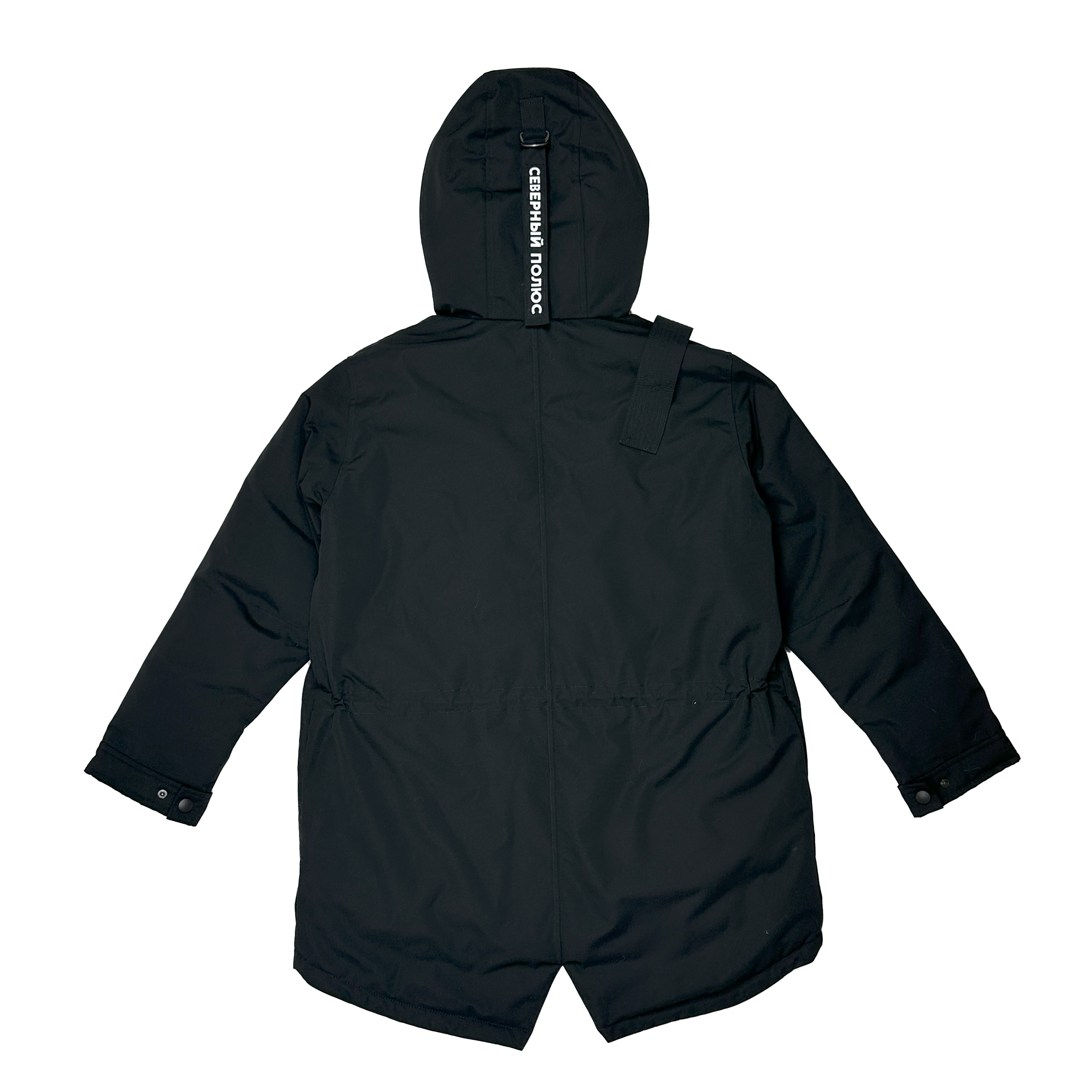 - элементы декора: съемный шеврон «Аrctic Explorer» на рукаве; погон на одном плече, повторяющий настоящие полярные погоны; нашивка «Северный полюс» на хлястике капюшона;